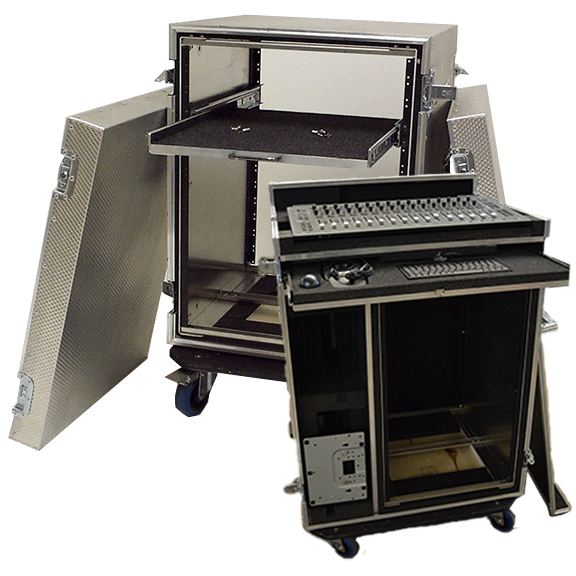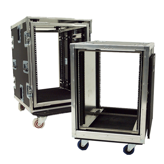 One type of case that is a standard in the sound, lighting & music business, along with the scientific & military communities is the rack case. Rack mount equipment is available with or without an outer casing and has an industry standard width faceplate designed to be mounted between rails. The purpose of this design is to allow mixing and matching of components to suit virtually any user requirement. For example, you might have a number of amplifiers that you want to house in the same enclosure along with signal processors, power conditioners or other related components. With rack mount cases you can combine all of these in one convenient package. When the time comes to upgrade or change your configuration, you simply unbolt the old hardware and bolt in the new.
